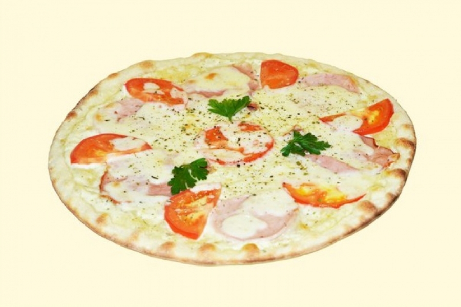 чесночный соус, моцарелла, охотничьи колбаски, филе куриное. шампиньоны, перец, пармезан.
